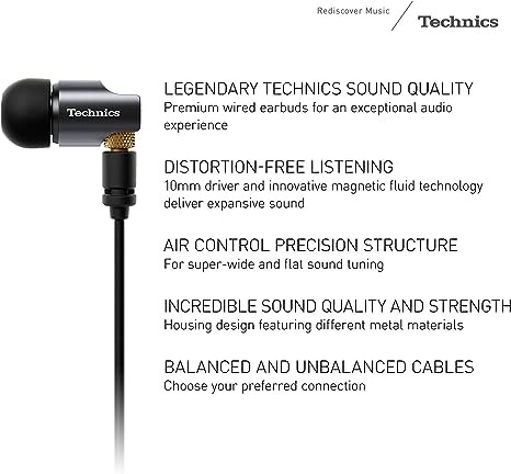 Technics Premium In-Ear Monitor IEM, High Fidelity Wired In-Ear Earphones with Innovative 10mm Drivers, Ultra Low Distortion - EAH-TZ700, Black/Gold
